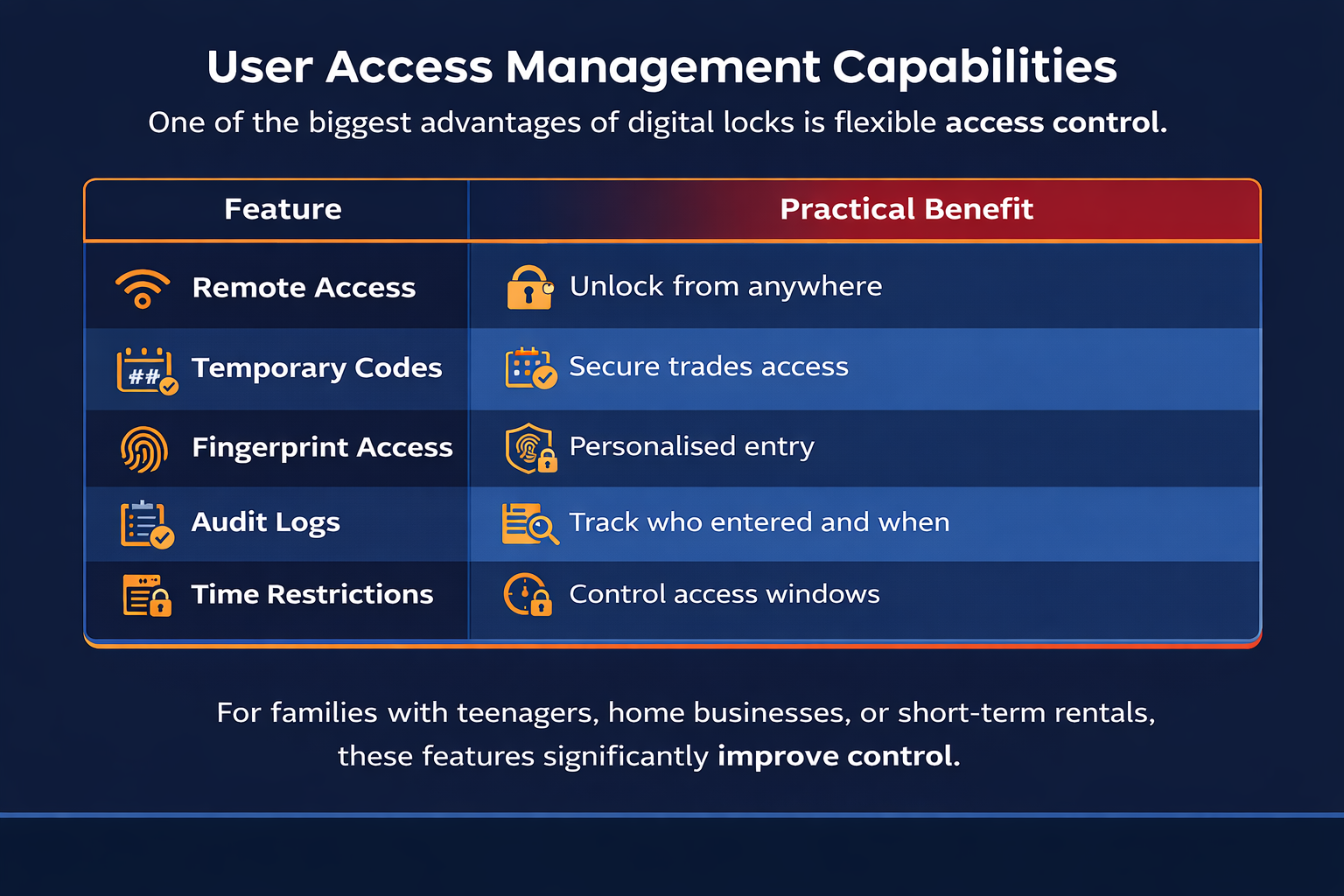 For families, Airbnb hosts, and modern households, digital locks offer flexibility that traditional locks cannot match.
